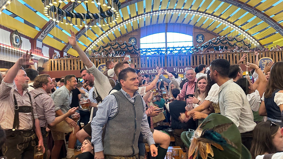 Feeling rejuvenated and determined, we set out to try and get into another tent. After multiple rejections, Tammy spotted a security guard at a side entrance to one of the tents. She coyly approached him and implored he take pity on us as this was our first Oktoberfest and we hadn’t been able to get in anywhere. He pondered our request as he looked at our despondent faces before finally nodding and waving us by. We were incredulous at our good fortune (thanks to Tammy’s persistence) and triumphantly entered the Löwenbräu tent as “Mamma Mia” blasted from the stage. Within 10 minutes we were standing on top of benches, drinking beers, and making friends. The vibe inside made it feel like a party with 5,000 of our closest friends, and we danced, drank, sang, and laughed until the tent closed at 11:00 pm.