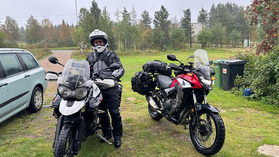 Our intro to Finland was a wet and cold one. After packing up our collapsed tent near Nordkapp, we rode an hour south to the first major town where we could get some coffee and breakfast. Feeling slightly rejuvenated from the caffeine, we continued south toward the border of Finland. We rode through the biting cold and non-stop rain for the next four hours until we reached our homestay near the village of Palojoensuu, Finland. The owners were incredibly welcoming, even as we dripped water all over their house carrying our luggage up to our room. They pulled out a heater and some drying racks and let us take over their kitchen seating area to dry our wet gear.